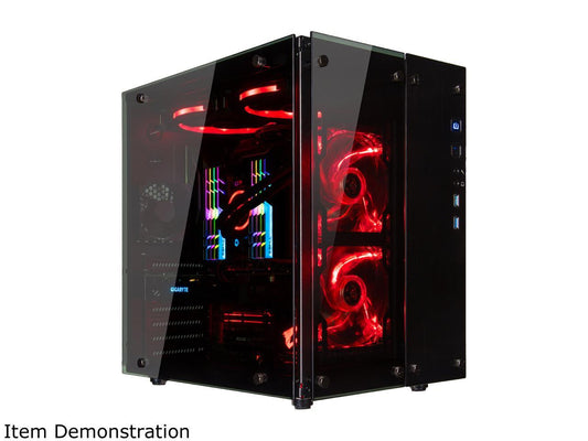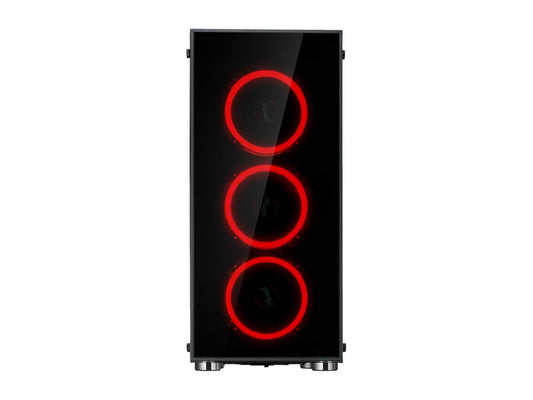 Rosewill Cube Mini ITX/Micro-ATX/ATX Mid Tower Gaming PC Computer Case, Black Steel Tempered Glass, Red LED Fans - Cullinan PX Red