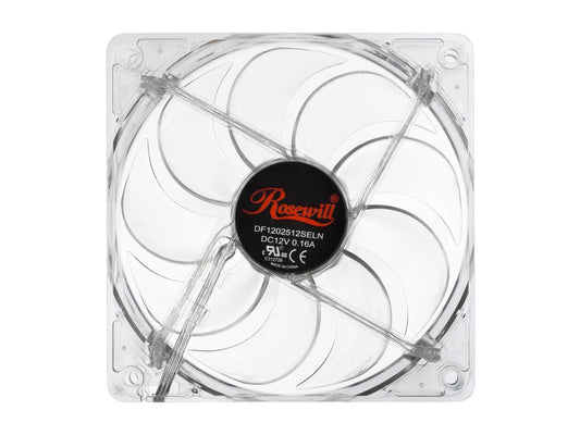 Rosewill RFA-80WL - 120mm CULLINAN Computer Case Cooling Fan with LP4 Adapter - Semi-Transparent Frame & White LED Lights, Sleeve Bearing, Silent