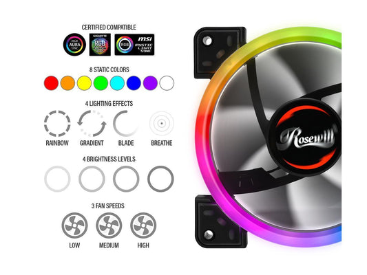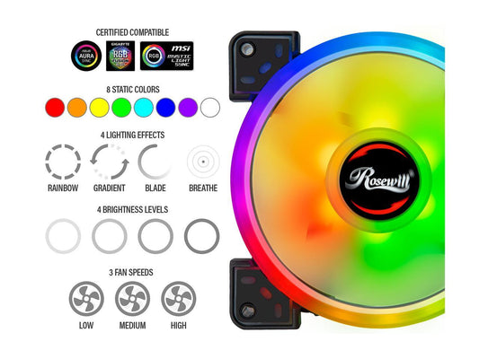 Rosewill RGBF-S12004 (1-Pack) 120mm Addressable RGB Fan, Dual Ring True RGB LED, Ultra Quiet Cooling with Long Life Rifle Bearings