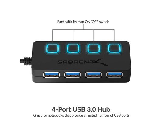 Sabrent 4-Port USB 3.0 Hub with Individual LED Power Switches (HB-UM43)