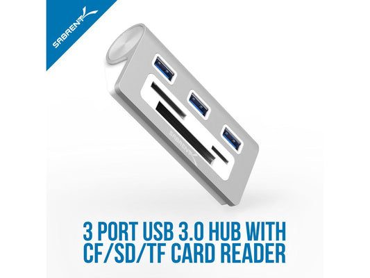Sabrent 3 Port Aluminum USB 3.0 Hub with Multi-In-1 Card Reader [12" cable] (HB-MACR)