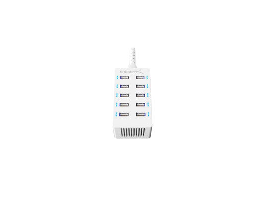 Sabrent Desktop Smart USB Rapid Charger 60 Watt (12 Amp) 10 Port - White Model SABAXTPCSW