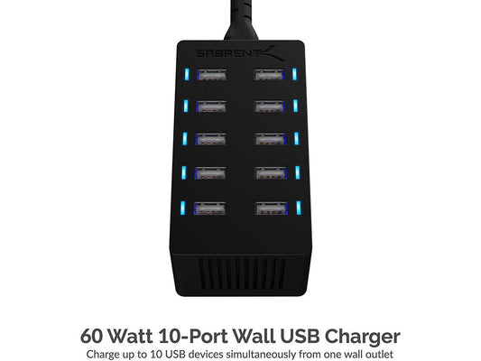 Sabrent 60 Watt (12 Amp) 10 Port Desktop Smart USB Rapid Charger (AX-TPCS)
