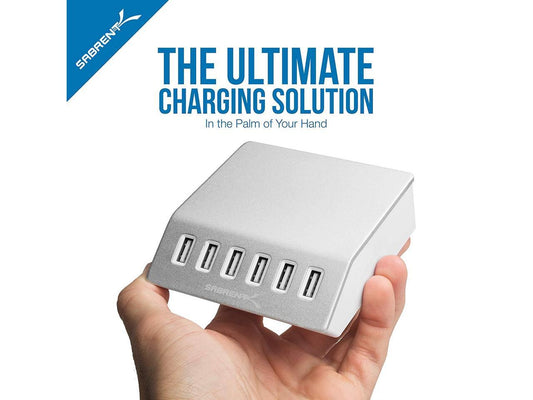 Sabrent Premium 60 Watt (12 Amp) 6-Port Aluminum Desktop USB Rapid Charger, Silver (AX-FLCH)