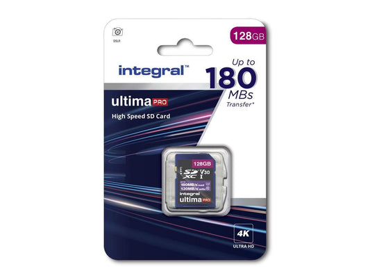 128GB Integral Ultima Pro SDXC Memory Card CL10 V30 UHI-I U3 180MB/sec