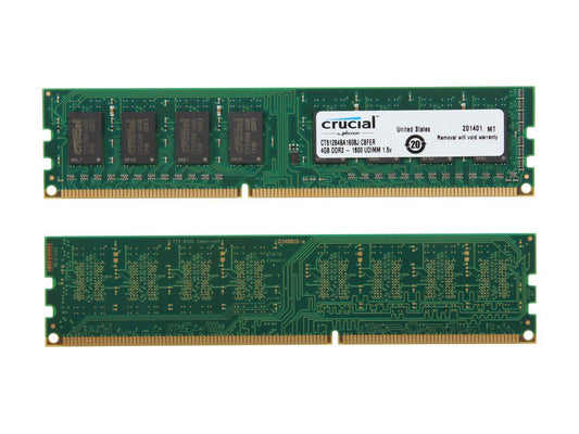 Crucial 8GB (2 x 4GB) 240-Pin DDR3 SDRAM DDR3 1600 (PC3 12800) Major Brand Chipset Desktop Memory Model CT2KIT51264BA160BJ