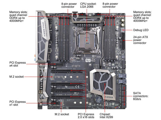 EVGA X299 FTW K, 142-SX-E297-KR, LGA 2066, Intel X299, SATA 6Gb/s, USB 3.1, USB 3.0, EATX, Intel Motherboard