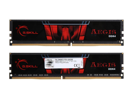 G.SKILL Aegis 32GB (2 x 16GB) 288-Pin DDR4 SDRAM DDR4 2400 (PC4 19200) Intel X299 / Z270 / Z170 / X99 Platform Desktop Memory Model F4-2400C17D-32GIS