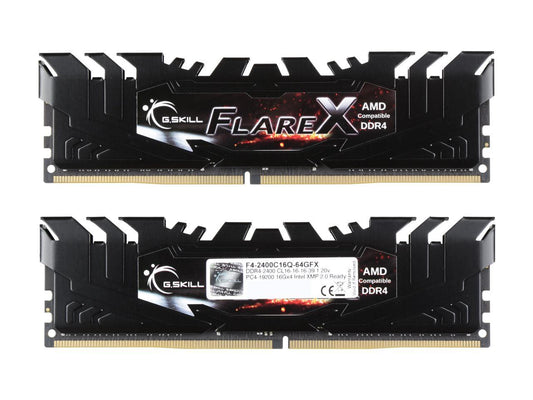 G.SKILL Flare X Series 64GB (4 x 16GB) 288-Pin DDR4 SDRAM DDR4 2400 (PC4 19200) AMD X370 / B350 / A320 Memory (Desktop Memory) Model F4-2400C16Q-64GFX