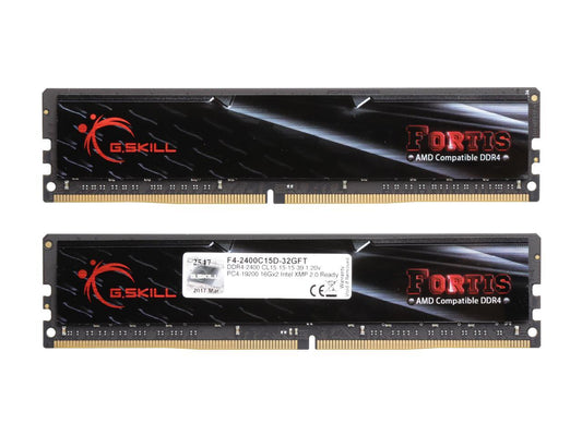 G.SKILL FORTIS Series 32GB (2 x 16GB) 288-Pin DDR4 SDRAM DDR4 2400 (PC4 19200) AMD X370 / B350 / A320 Memory (Desktop Memory) Model F4-2400C15D-32GFT