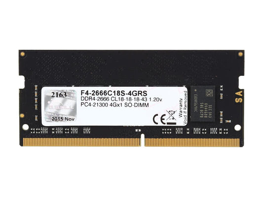 G.SKILL Ripjaws Series 4GB 260-Pin DDR4 SO-DIMM DDR4 2666 (PC4 21300) Laptop Memory Model F4-2666C18S-4GRS