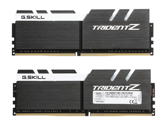 G.SKILL TridentZ Series 16GB (2 x 8GB) 288-Pin DDR4 SDRAM DDR4 3600 (PC4 28800) Intel Z170 / Z270 / Z370 / X299 Desktop Memory Model F4-3600C16D-16GTZSW