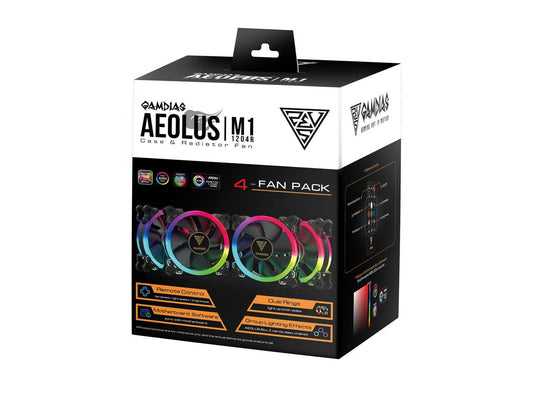 GAMDIAS AEOLUS M1-1204R 120MM RGB 4 in 1 Fan Pack with Controller and Remote, 4-Pack.