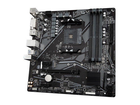 GIGABYTE A520M DS3H mATX AM4 5+3 Phases Digital PWM, GIGABYTE Gaming GbE LAN, NVMe PCIe 3.0 x4 M.2, 3 Display Interfaces, Q-Flash Plus, RGB Fusion 2.0, Motherboard