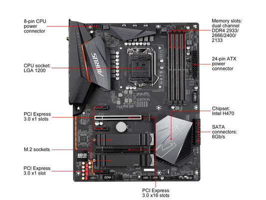 GIGABYTE H470 AORUS PRO AX LGA 1200 Intel H470 SATA 6Gb/s ATX Intel Motherboard