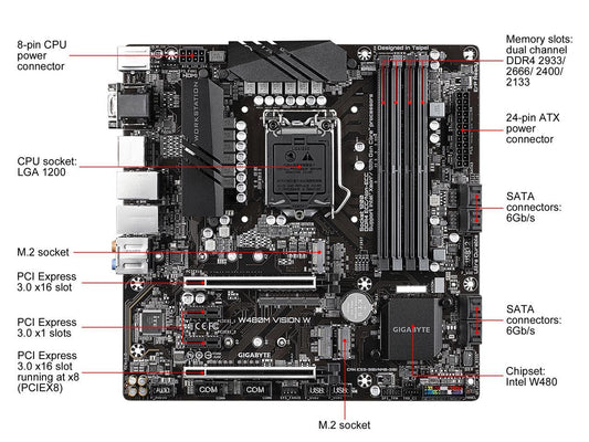 GIGABYTE W480 VISION D LGA 1200 Intel W480 SATA 6Gb/s ATX Intel Motherboard