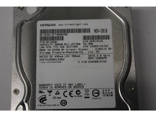 Hitachi Deskstar 7K1000.C Series HDS721050CLA362 500 GB Internal 3.5-inch Hard Drive - SATA/300