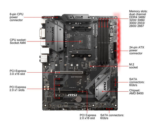 MSI ARSENAL GAMING B450 TOMAHAWK AM4 AMD B450 SATA 6Gb/s USB 3.1 HDMI ATX AMD Motherboard