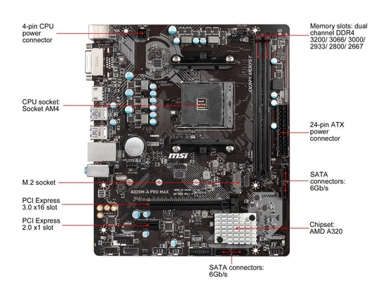 MSI A320M-A PRO MAX AM4 AMD A320 SATA 6Gb/s Micro ATX AMD Motherboard