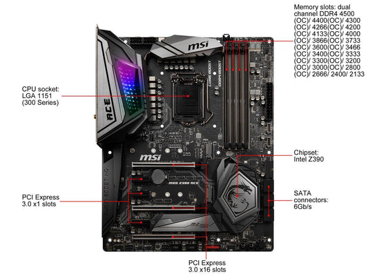 MSI MEG Z390 ACE LGA 1151 (300 Series) Intel Z390 SATA 6Gb/s USB 3.1 ATX Intel Motherboard