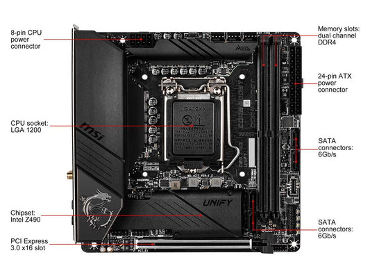 MSI MEG Z490I UNIFY LGA 1200 Intel Z490 SATA 6Gb/s Mini ITX Intel Motherboard