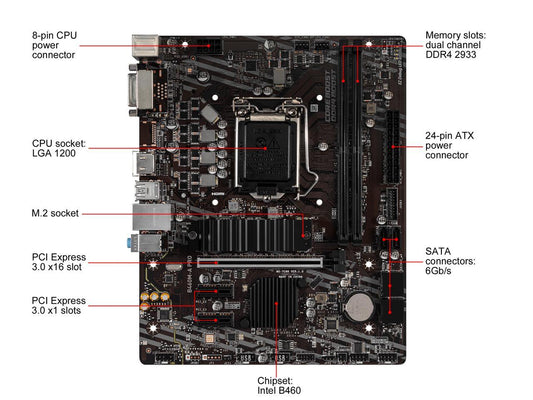 MSI PRO B460M PRO LGA 1200 Intel B460 SATA 6Gb/s Micro ATX Intel Motherboard