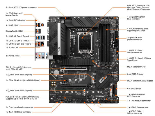 MSI PRO Z690-A DDR4 LGA 1700 Intel Z690 SATA 6Gb/s ATX Intel Motherboard
