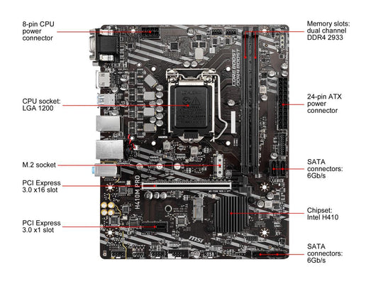 MSI PRO H410M PRO LGA 1200 Intel H410 SATA 6Gb/s Micro ATX Intel Motherboard