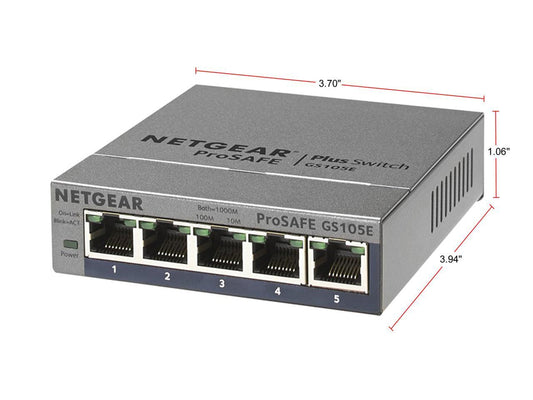 NETGEAR 5-Port Gigabit Ethernet Plus Switch (GS105Ev2) - Desktop, and ProSAFE Limited Lifetime Protection
