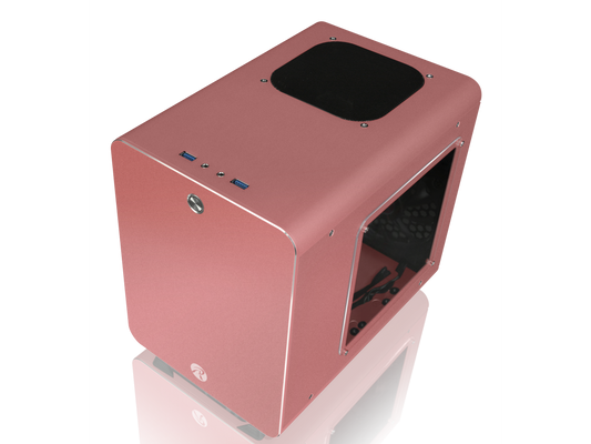 RAIJINTEK METIS PLUS PINK, a Alu. M-ITX Case, is with one 12025 LED fan at rear, USB 3.0* 2, Ventilate holes at top, Compatible with Standard ATX PSU, 170mm VGA Card length, 160mm CPU Cooler heigth.
