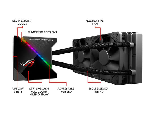 ASUS ROG Ryujin 240 RGB AIO Liquid CPU Cooler 240mm Radiator (Dual 120mm 4-pin Noctua iPPC PWM Fans) with LIVEDASH OLED Panel and FanXpert Controls