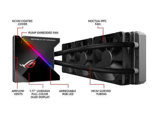 ASUS ROG Ryujin 360 RGB AIO Liquid CPU Cooler 360mm Radiator (Three 120mm 4-pin Noctua iPPC PWM Fans) with LIVEDASH OLED Panel and FanXpert Controls