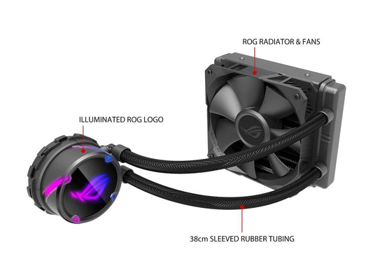 ASUS ROG Strix LC 120 RGB AIO Liquid CPU Cooler 120mm Radiator, 120mm 4-pin PWM Fan with FanXpert Controls, support for Intel and AMD motherboards