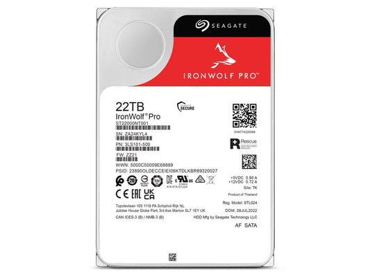 Seagate IronWolf Pro 22TB Enterprise NAS Internal HDD – CMR 3.5in SATA 6Gb/s 7200 RPM (ST22000NT001)