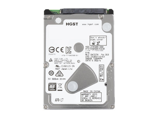 HGST 500GB Travelstar Z5K500.B 2.5-inch SATA III 5400 RPM, 16MB Cache Hard Disk Drive Model HTS545050B7E660