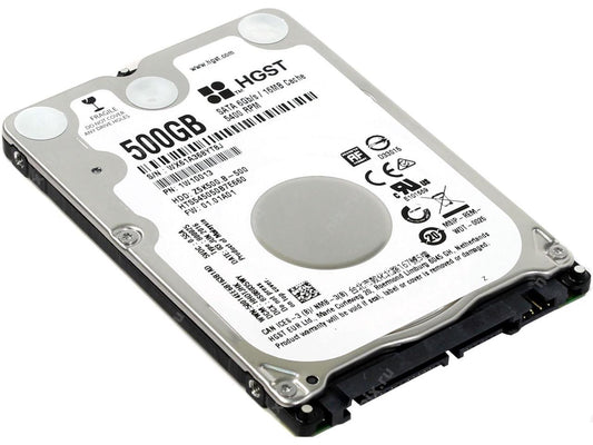 HGST 500GB Travelstar Z5K500 2.5-inch 7mm SATA 6.0Gb/s (3.0Gb/s and 1.5Gb/s Backwards Compatible) 5400RPM Hard Drive With 8MB Cache. Model HIT0J30005M