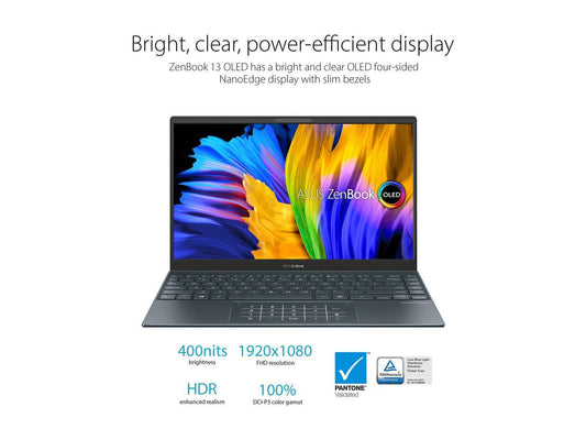 ASUS ZenBook 13 Ultra-Slim Laptop, 13.3" OLED FHD NanoEdge Bezel Display, Intel Core i7-1165G7, 8GB LPDDR4X RAM, 512GB SSD, NumberPad, Thunderbolt 4, Wi-Fi 6, Windows 11 Home, AI Noise-Cancellation, Pine Grey, UX325EA-EH71