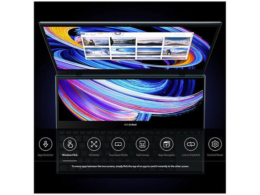 ASUS ZenBook Pro 14 Duo OLED 14.5" 2.8K OLED Touch, 120Hz Refresh Rate, ScreenPad Plus, Intel i9-12900H CPU, RTX 3050 Ti, 32GB RAM, 1TB SSD, Windows 11 Home, Tech Black, UX8402ZE-DB96T