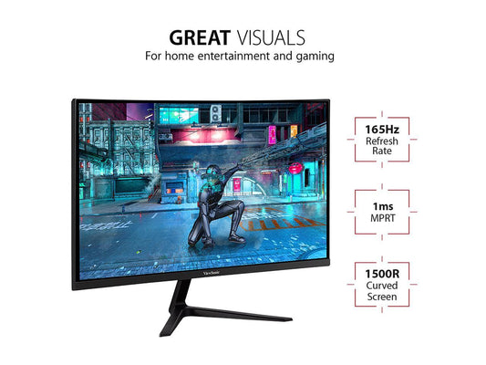 ViewSonic VX2718-2KPC-MHD 27 Inch WQHD 1440p 165Hz 1ms Curved Gaming Monitor with Adaptive-Sync Eye Care HDMI and Display Port