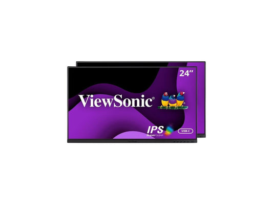 ViewSonic 24" (23.8" Viewable) IPS FHD Dual Monitor Pack 5ms (GTG) 1920 x 1080 D-Sub, HDMI, DisplayPort, Audio Built-in Speakers VA2456-MHD H2