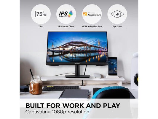 ViewSonic VA2447-MHJ 24 Inch Full HD 1080p Monitor with Advanced Ergonomics, Ultra-Thin Bezel, AMD FreeSync, 75Hz, Eye Care, and HDMI, VGA Inputs for Home and Office