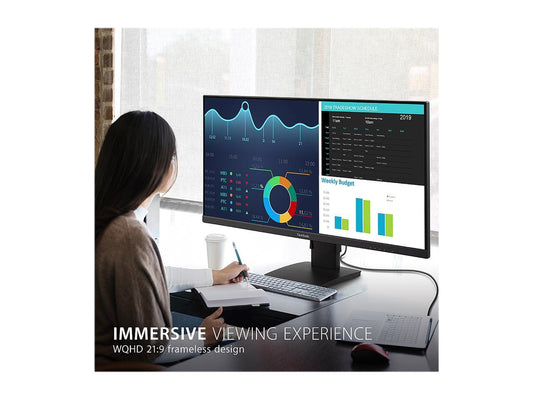 ViewSonic VA3456-MHDJ 34 Inch 21:9 UltraWide WQHD 1440p Monitor Frameless IPS with Ergonomics Design HDMI and DisplayPort Inputs for Home and Office