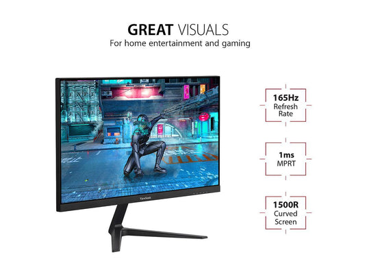 ViewSonic VX2418-P-MHD 24 Inch Frameless Full HD 1080p 165Hz 1ms Gaming Monitor with Adaptive-Sync Eye Care HDMI and Display Port