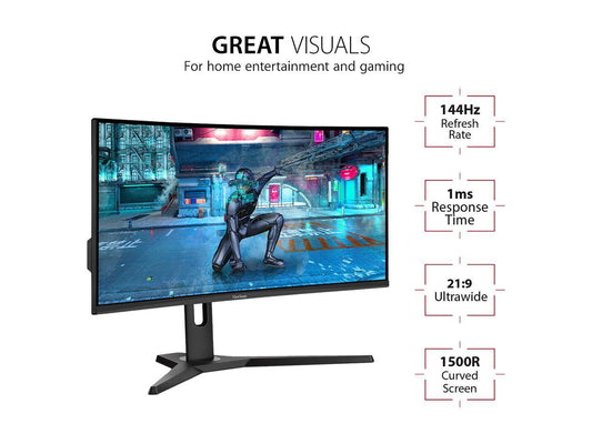 ViewSonic VX3418-2KPC 34 Inch 21:9 UltraWide WQHD 1440p 144Hz 1ms Curved Gaming Monitor with Adaptive-Sync Eye Care HDMI and Display Port
