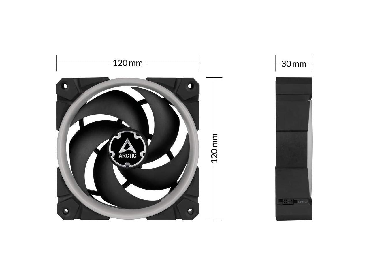 ARCTIC BioniX P120 A-RGB (Bundle 3 pc, incl. A-RGB Controller) - 120 mm Pressure-Optimised Fan with A-RGB, PWM, Cooler, Fluid Dynamic Bearing, 400-2300 RPM - Black