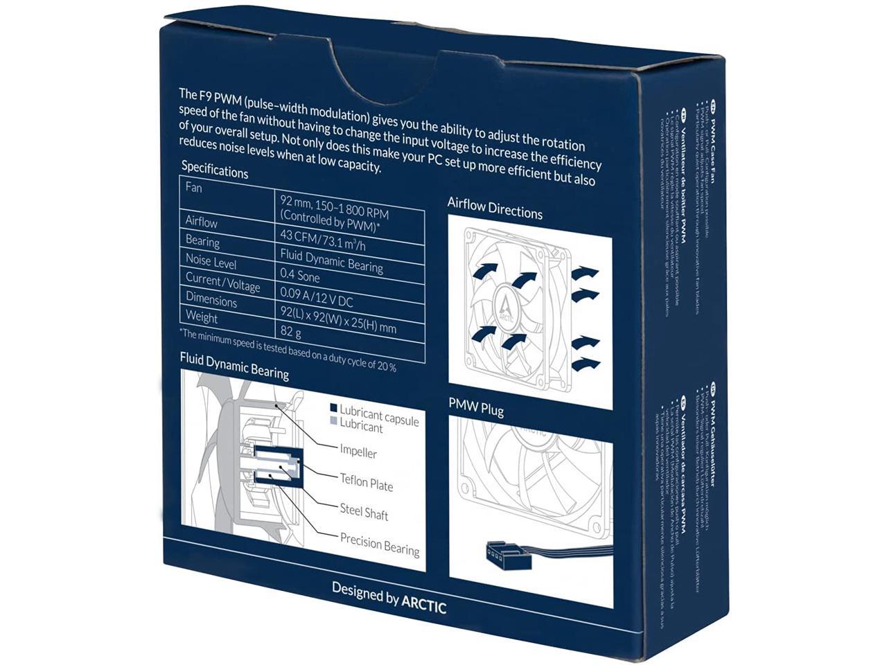 ARCTIC 92 mm F9 PWM Case Fan Signal regulates Fan Speed, Very Quiet Motor Computer Black Model ACFAN00213A