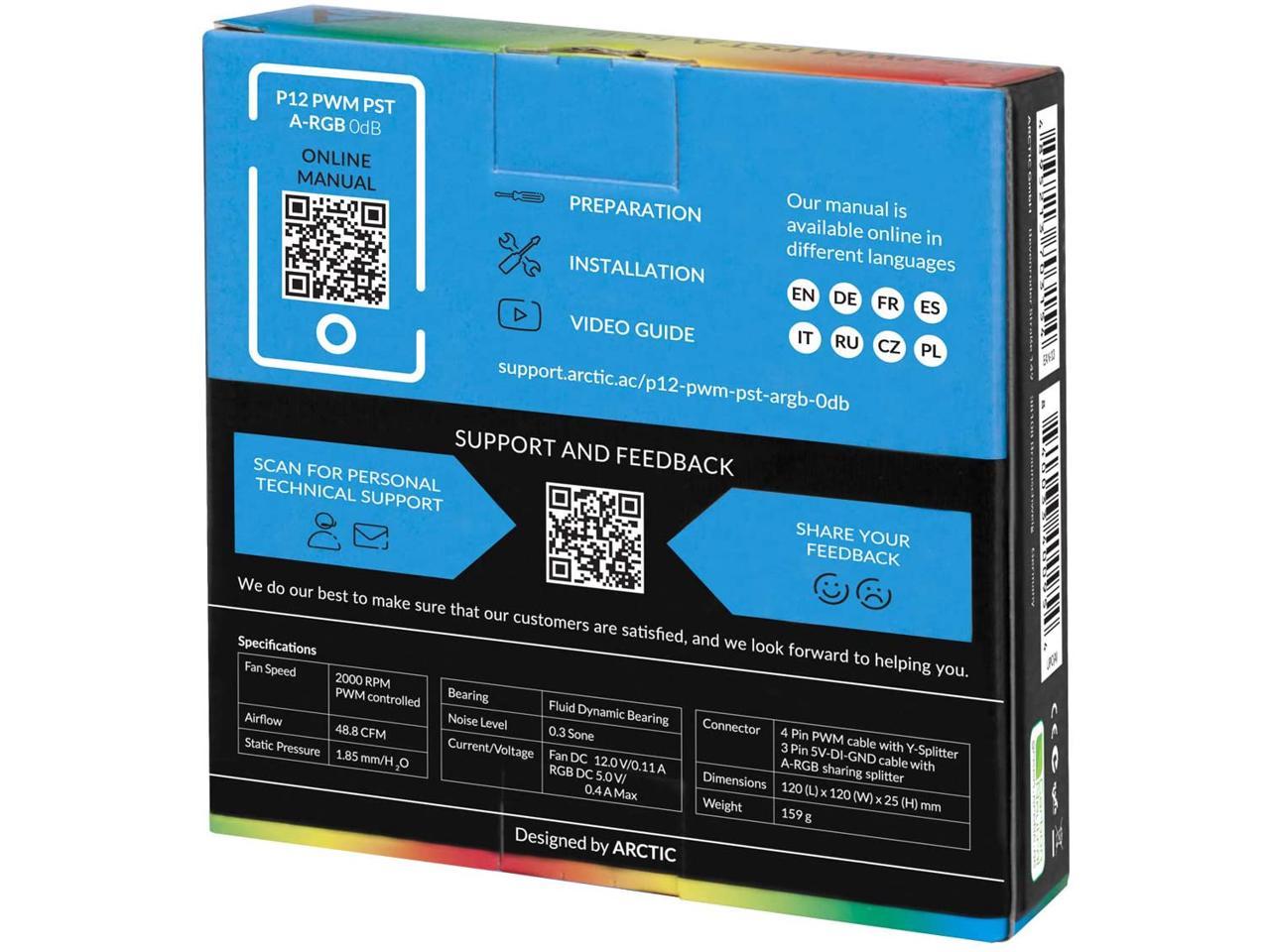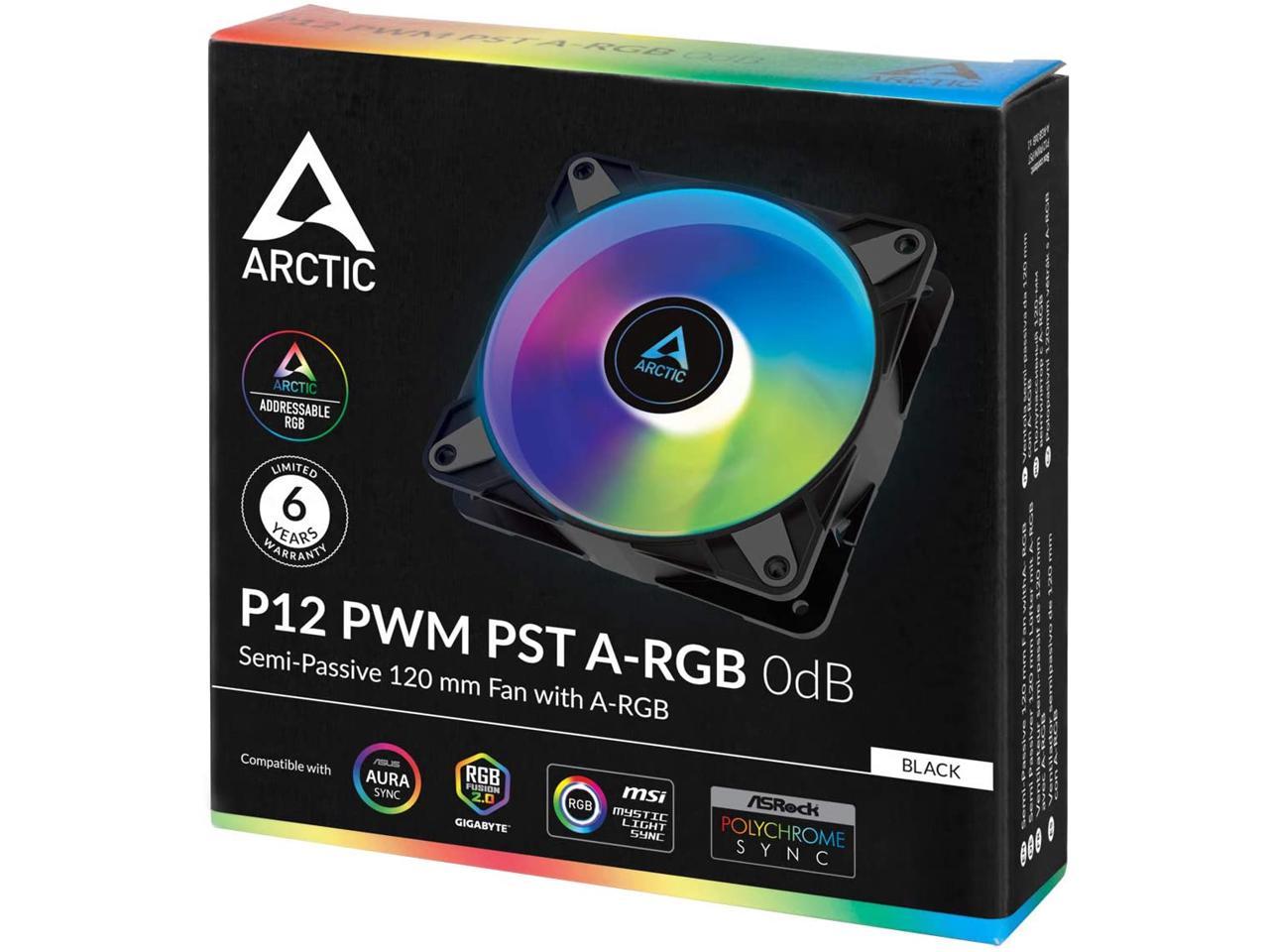 Arctic ACFAN00231A P12 PWM PST A-RGB 0dB - 120 mm PWM case Fan Optimized for Static Pressure, case Fan, semi-Passive: 0-2000 RPM, 5V 3 pin ARGB LED, Single Fan - Black