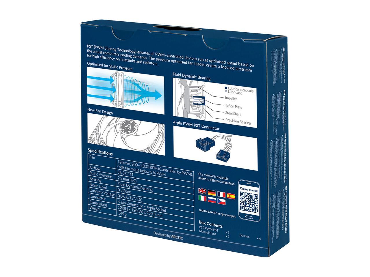 Arctic P12 PWM PST (Black/Black) - Pressure-optimised 120 mm Fan with PWM and PST (PWM Sharing Technology)