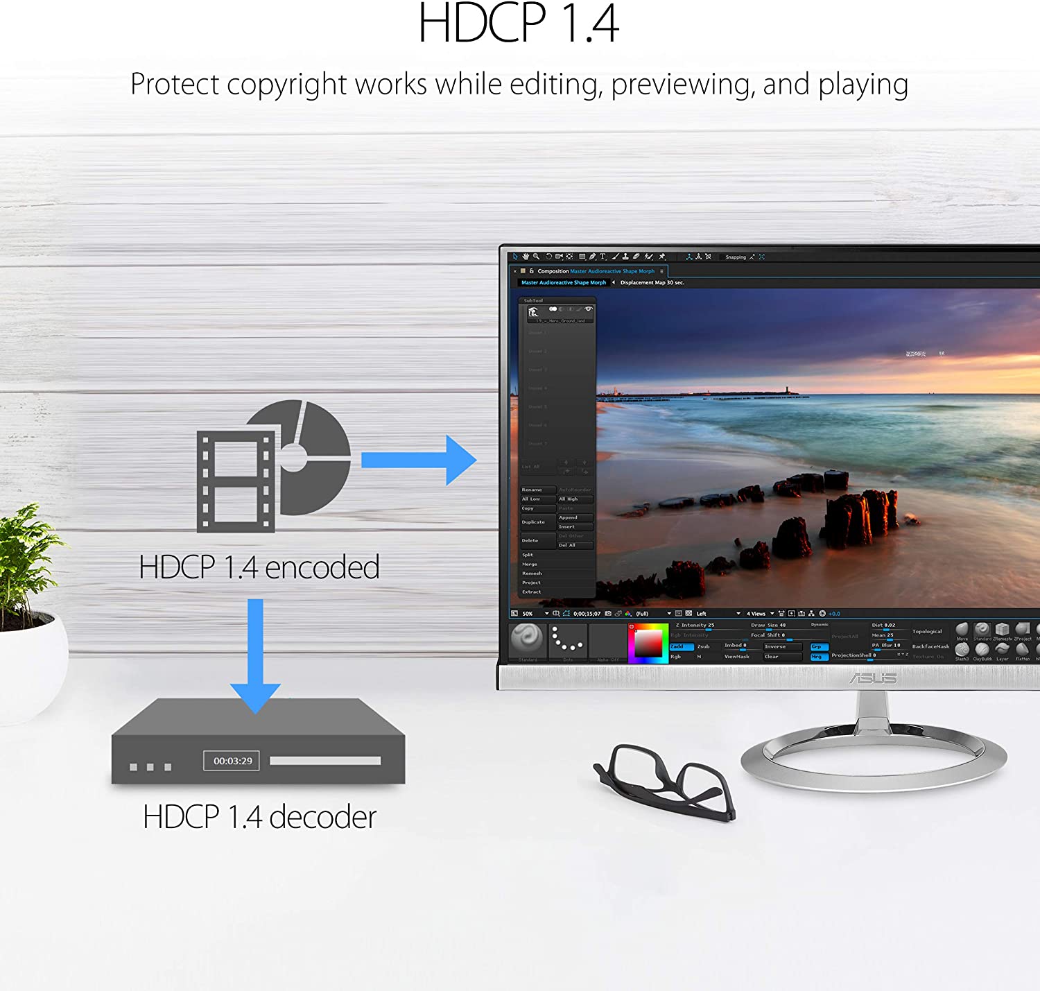 With ASUS Smart Contrast Ratio (ASCR) of 80,000,000:1 and 250cd/m2 brightness, MX279HS augments display contrast and sharpness by adjusting backlighting luminance to achieve the deepest blacks and brightest whites for truly lifelike visuals.