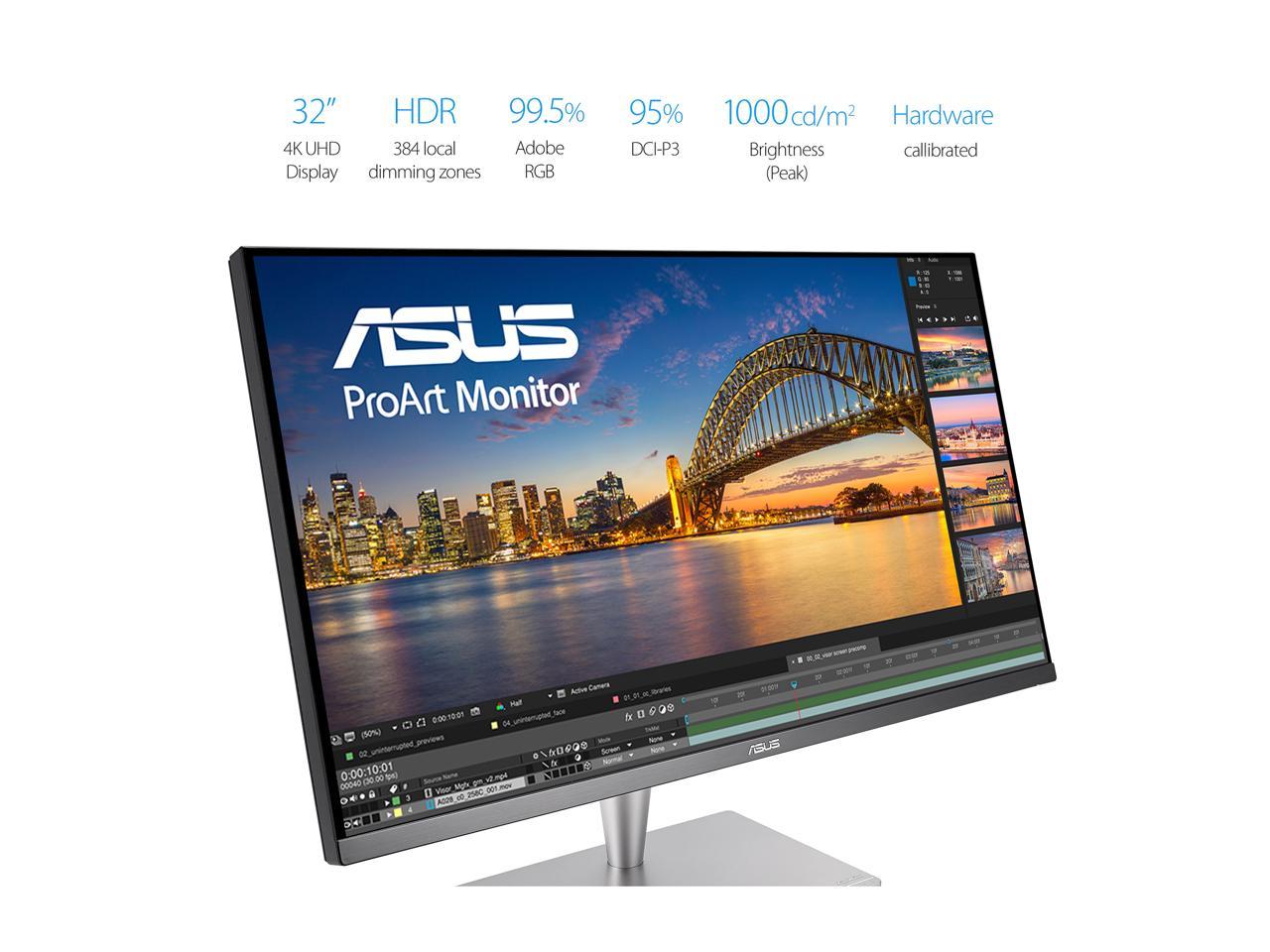 ASUS ProArt PA32UC 32" Ultra HD 3840 x 2160 4K Resolution 2x Thunderbolt 3 DisplayPort 4x HDMI HDR-10 Asus Eye Care Technology Flicker-Free Low Blue Light Built-in Speakers LED Backlit ProArt Monitor